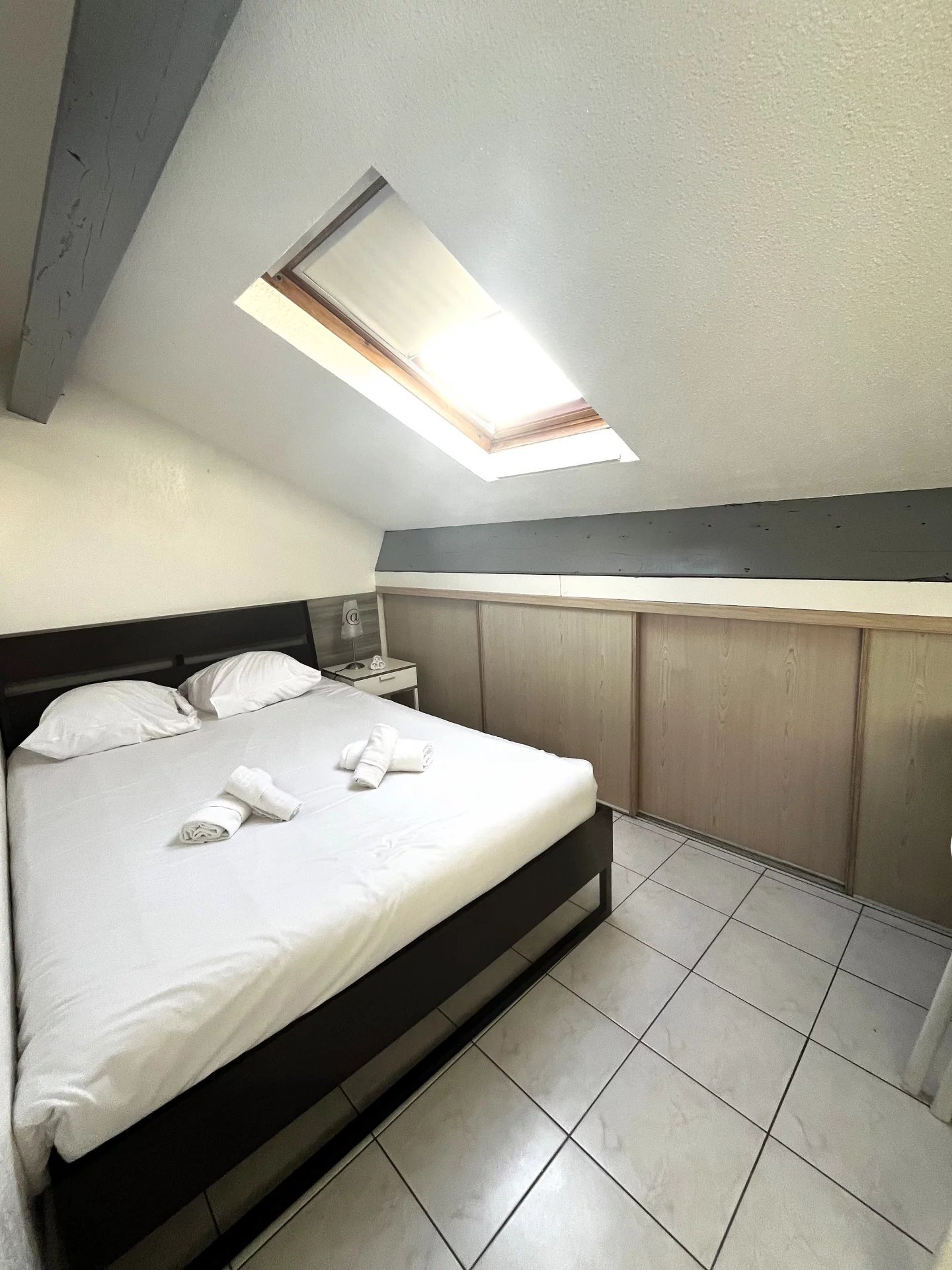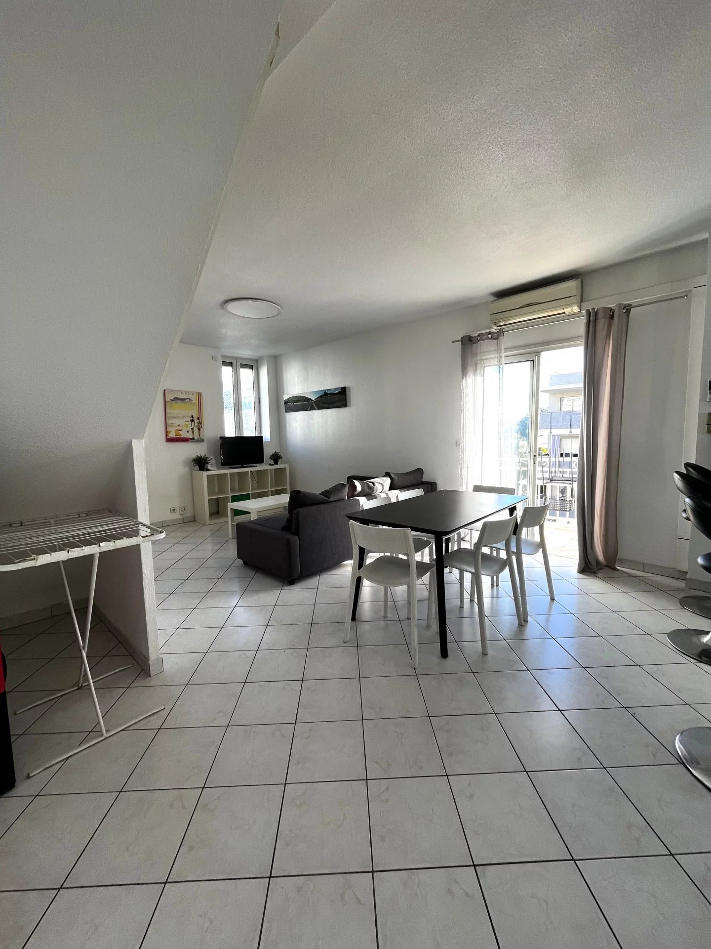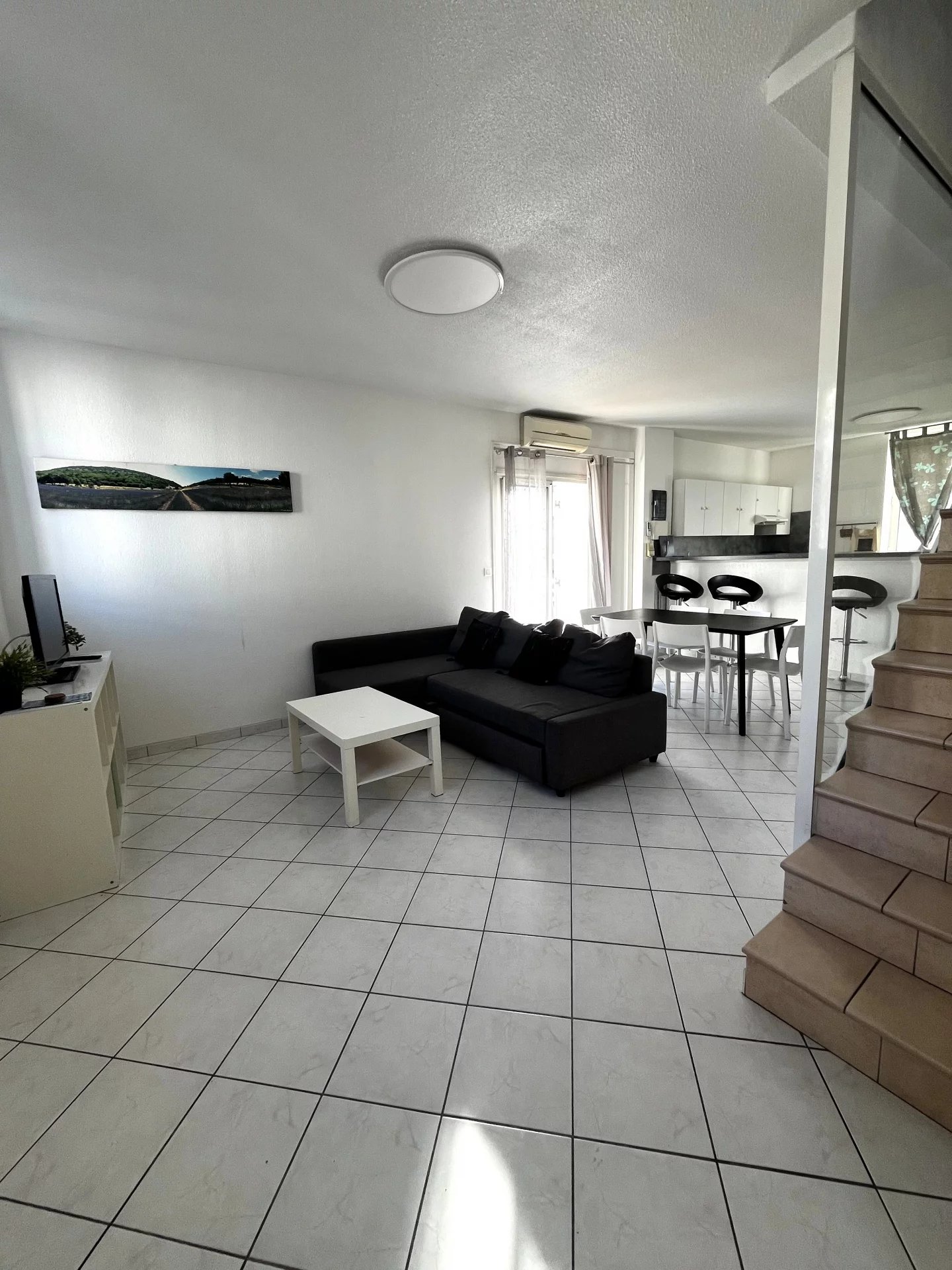 L’espace de vie se compose d’un grand séjour lumineux, ouvert sur une cuisine américaine entièrement équipée et aménagée, pensée pour allier esthétisme et fonctionnalité. Cet ensemble s’ouvre sur un balcon, idéal pour profiter de moments de détente en toute sérénité.